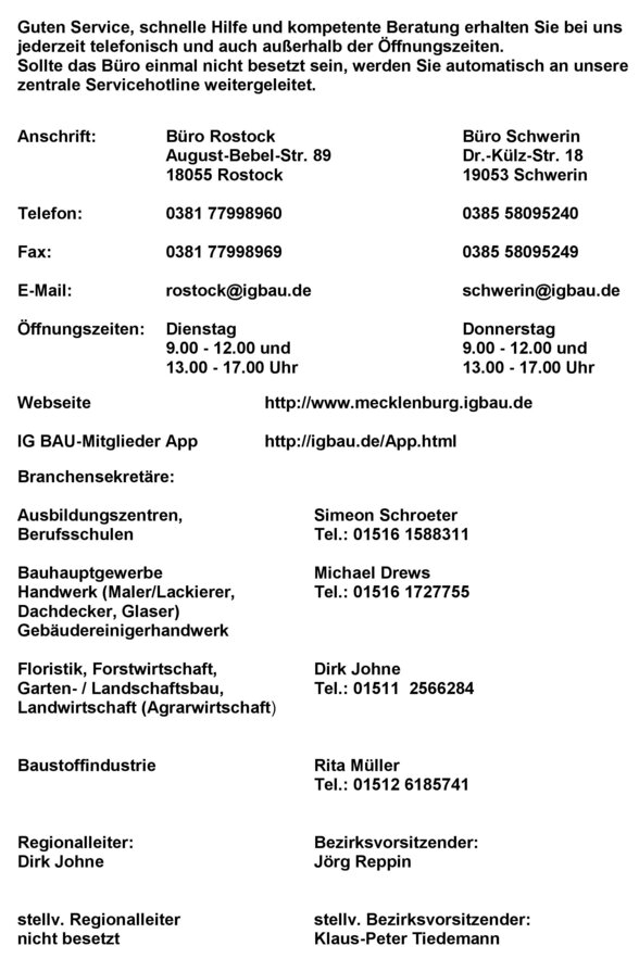 Rentensprechstunden der IG Bauen-Agrar-Umwelt, BV Mecklenburg