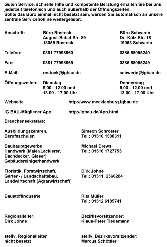 Rentensprechstunden der IG Bauen-Agrar-Umwelt, BV Mecklenburg
